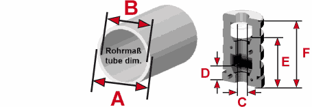 Die Sechskantmuttern befinden sich in konischen Kammern dieser zweiteiligen Expanderverbinder ohne Bund. Beim Anziehen des Gewindes wird der Expander an die Innenwand des Rohres gepresst (Dübeleffekt). So entsteht eine zugbelastbare Verbindung, deren Belastbarkeit in hohem Maße abhängig ist von der Beschaffenheit der Rohre (Toleranzen, Rauheit, Schweißnähte etc.) sowie vom Drehmoment beim Anziehen; wir empfehlen daher Eigenversuche zur Ermittlung der Werte.