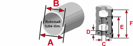 Die Sechskantmuttern befinden sich in konischen Kammern dieser zweiteiligen Expanderverbinder ohne Bund. Beim Anziehen des Gewindes wird der Expander an die Innenwand des Rohres gepresst (Dübeleffekt). So entsteht eine zugbelastbare Verbindung, deren Belastbarkeit in hohem Maße abhängig ist von der Beschaffenheit der Rohre (Toleranzen, Rauheit, Schweißnähte etc.) sowie vom Drehmoment beim Anziehen; wir empfehlen daher Eigenversuche zur Ermittlung der Werte.