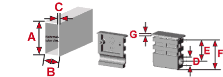 - Befestigungen für Rollen mit Steckstift in senkrecht stehenden Rechteckrohren Serien VR/VRH für Rechteckrohr.