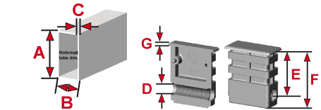 - Befestigungen für Rollen mit Gewindestift in senkrecht stehenden Rechteckrohren Serie VS für Rechteckrohr.