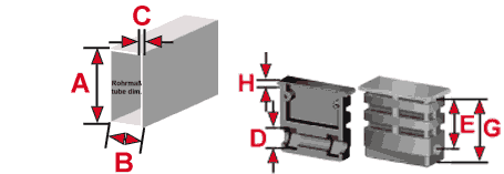 - Befestigungen für Rollen mit Gewindestift in senkrecht stehenden Rechteckrohren Serie VS für Rechteckrohr.