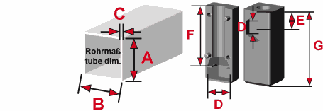 Der Verbinder hat in Längsrichtung eine konische Kammer für Sechskantmuttern. Beim Anziehen des Gewindes wird der Verbinder an die Innenwand des Rohres gepresst (Dübeleffekt). So entsteht eine zugbelastbare Verbindung, deren Belastbarkeit in hohem Maße abhängig ist von der Beschaffenheit der Rohre (Toleranzen, Rauheit, Schweißnähte etc.) sowie vom Drehmoment beim Anziehen; wir empfehlen daher Eigenversuche zur Ermittlung der Werte. Die seitlichen Mutternkammern sind passend für Sechskantmuttern STM M8/439, die Mutternkammer in Längsrichtung ist passend für STM M8.