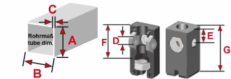 Der Verbinder hat in Längsrichtung eine konische Kammer für Sechskantmuttern. Beim Anziehen des Gewindes wird der Verbinder an die Innenwand des Rohres gepresst (Dübeleffekt). So entsteht eine zugbelastbare Verbindung, deren Belastbarkeit in hohem Maße abhängig ist von der Beschaffenheit der Rohre (Toleranzen, Rauheit, Schweißnähte etc.) sowie vom Drehmoment beim Anziehen; wir empfehlen daher Eigenversuche zur Ermittlung der Werte. Die seitlichen Mutternkammern sind passend für Sechskantmuttern STM M8/439, die Mutternkammer in Längsrichtung ist passend für STM M8.