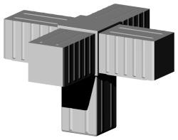 3-dimensionaler 5-Wege-Steckverbinder für Vierkantrohr; Polyamid ähnlich Lichtgrau RAL 7035 mit... mehr