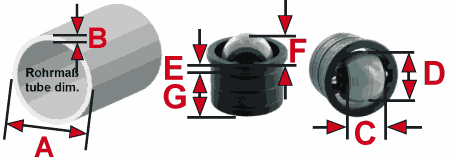 Stopfen-Gleitrolle für Rundrohr; Polyamid schwarz mit Stahlbolzen und Rolle aus elastischem TPE... mehr