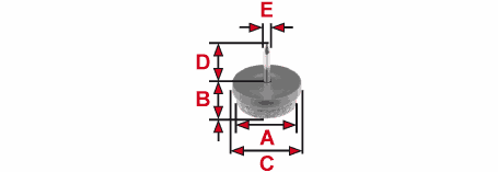 Möbelgleiter rund; Polystyrol weiß mit Metallstift und eingespritzter grauer Wollfilzgleitfläche