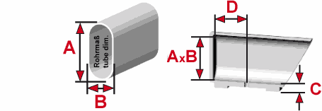 Winkelgleitkappe für Ovalrohr; Polyamid schwarz mit Aufnahme für Filz