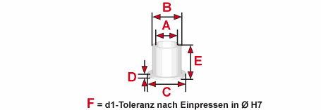 - Das Gleitlager ist als Einpressbuchse konstruiert, d.h. erst nach Einpressen in die Aufnahmebohrung stellt sich der Innendurchmesser mit der entsprechenden Toleranz ein.