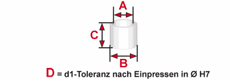 - Das Gleitlager ist als Einpressbuchse konstruiert, d.h. erst nach Einpressen in die Aufnahmebohrung stellt sich der Innendurchmesser mit der entsprechenden Toleranz ein.