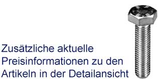 | DIN933 M10X20 | SW17 | M10 | 20 | Verpackungseinheit: 1000 Stck. | 10,50 € / 100 Stck. | |