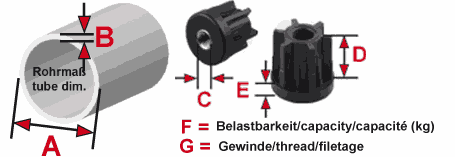 Gewindestopfen für Rundrohr; Polyamid schwarz mit 30 % Glasfaser und vernickeltem Messinggewinde... mehr