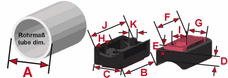 Schalengleiter für Rundrohr; Polyamid schwarz mit Polyurethan-Gleitfläche ca. 80 Shore A