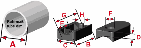 - Für horizontale Rohre (Rohr-Freischwinger und Kufenstühle).