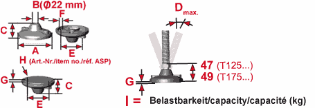 - Montiert mit Kugelschraube Serie TH R22/BK und Gewindestopfen für Quadratrohr Serie VLSS und Rundrohr Serie RLSS - Konditionen auf Anfrage.