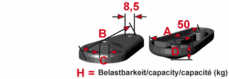 - Stellfläche: mit Aussparungen.
