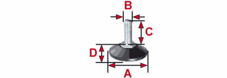Stellteller rund; Polypropylen schwarz mit Anti-Rutsch-Stellfläche aus EPDM natur und starrem glanzverzinkten Stahlgewinde