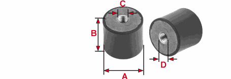 Schwingungsdämpfer rund mit 2 Innengewinden; NR (Natur-Kautschuk) Shore A55° schwarz mit... mehr