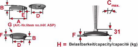 - Passende Schrauben M12 bis M30 Serie GSH/TSS/BK.