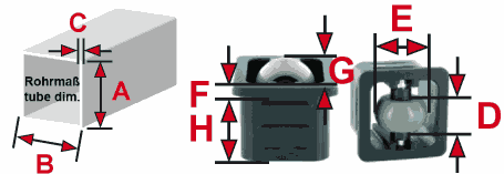 Stopfen-Gleitrolle für Quadratrohr; Polyamid schwarz mit Stahlbolzen und Rolle aus elastischem... mehr