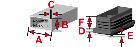 Abschlussstopfen/Gleiter für Rechteckrohr; Polyethylen schwarz mit aufgeschweißter... mehr