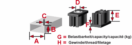 - Passende Stellfüße mit Kugelgelenkschraube oder mit schwenkbarem Gewindebolzen.