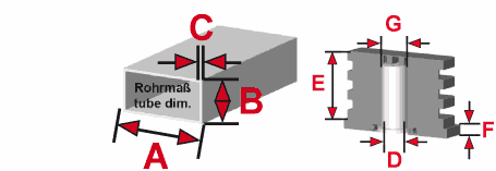 - Unmontiert ohne eingelegte Hülse Serie VRH unmontiert für Rechteckrohr.